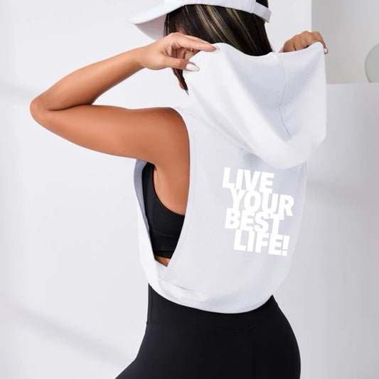 Women’s Cut-Out Drawstring Sports Hoodie White on White