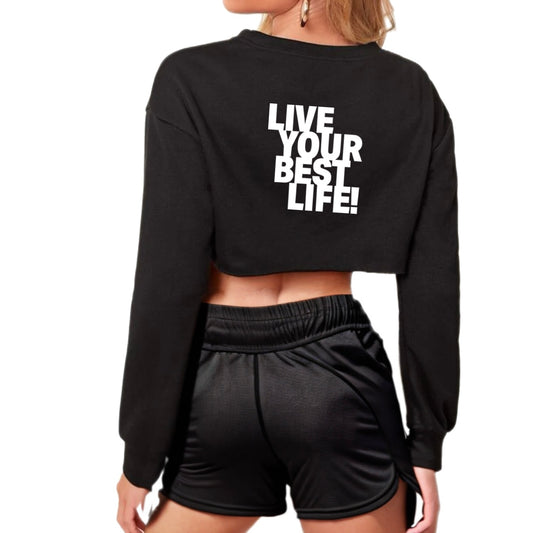 Women's Drop Shoulder Crop Pullover Without Camisole Black