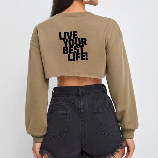 Women's Drop Shoulder Crop Pullover Without Camisole Mocha Brown